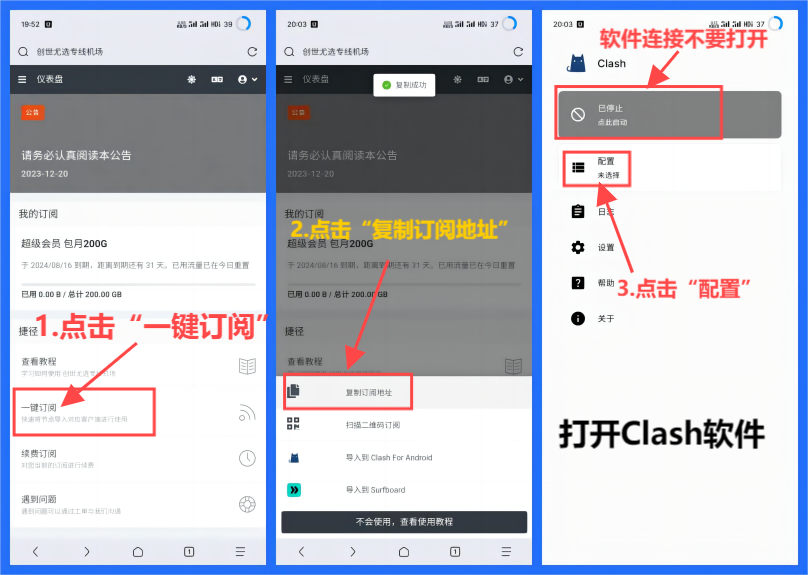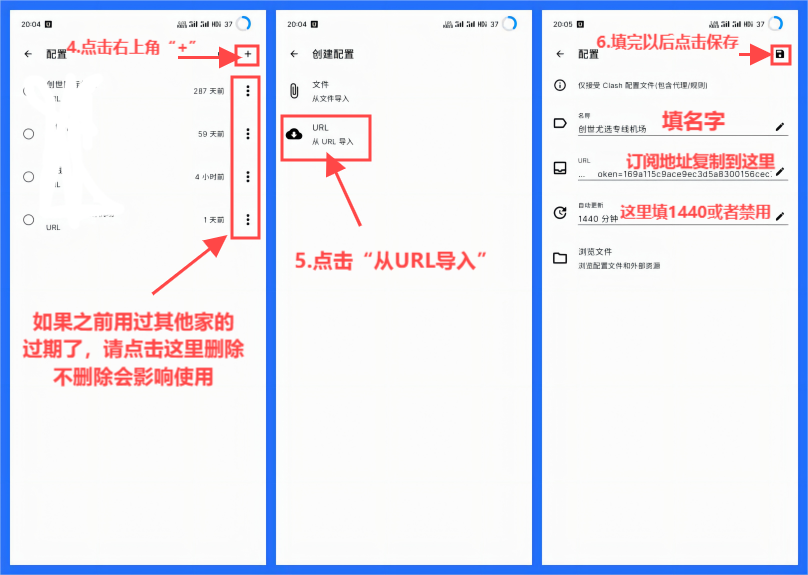 注:尽量使用“手机流量”配置订阅,订阅未导入前,软件首页的“连接”不要启动,关闭状态才能配置成功!