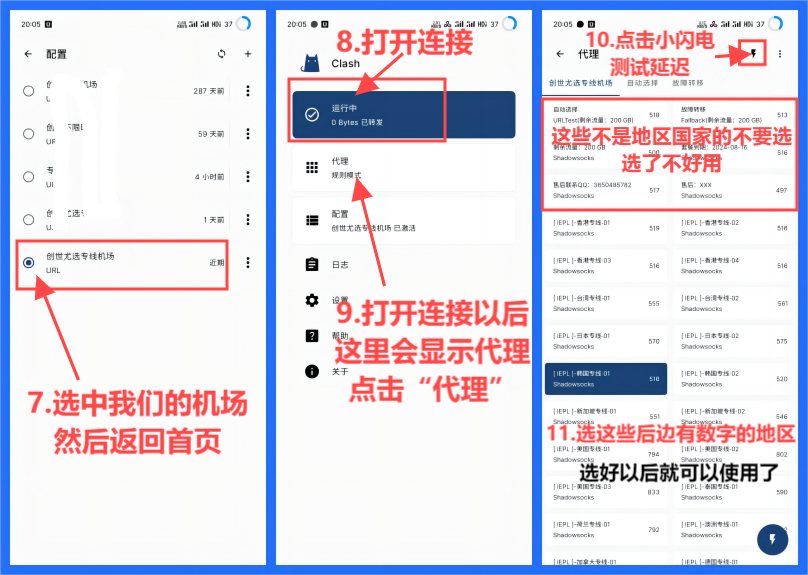【重要:每次用之前先点一下右上角闪电,选后边有数字的地区节点(比如香港台湾美国日本等等)没有地区的不要选!有问题随便咨询QQ客服售后】