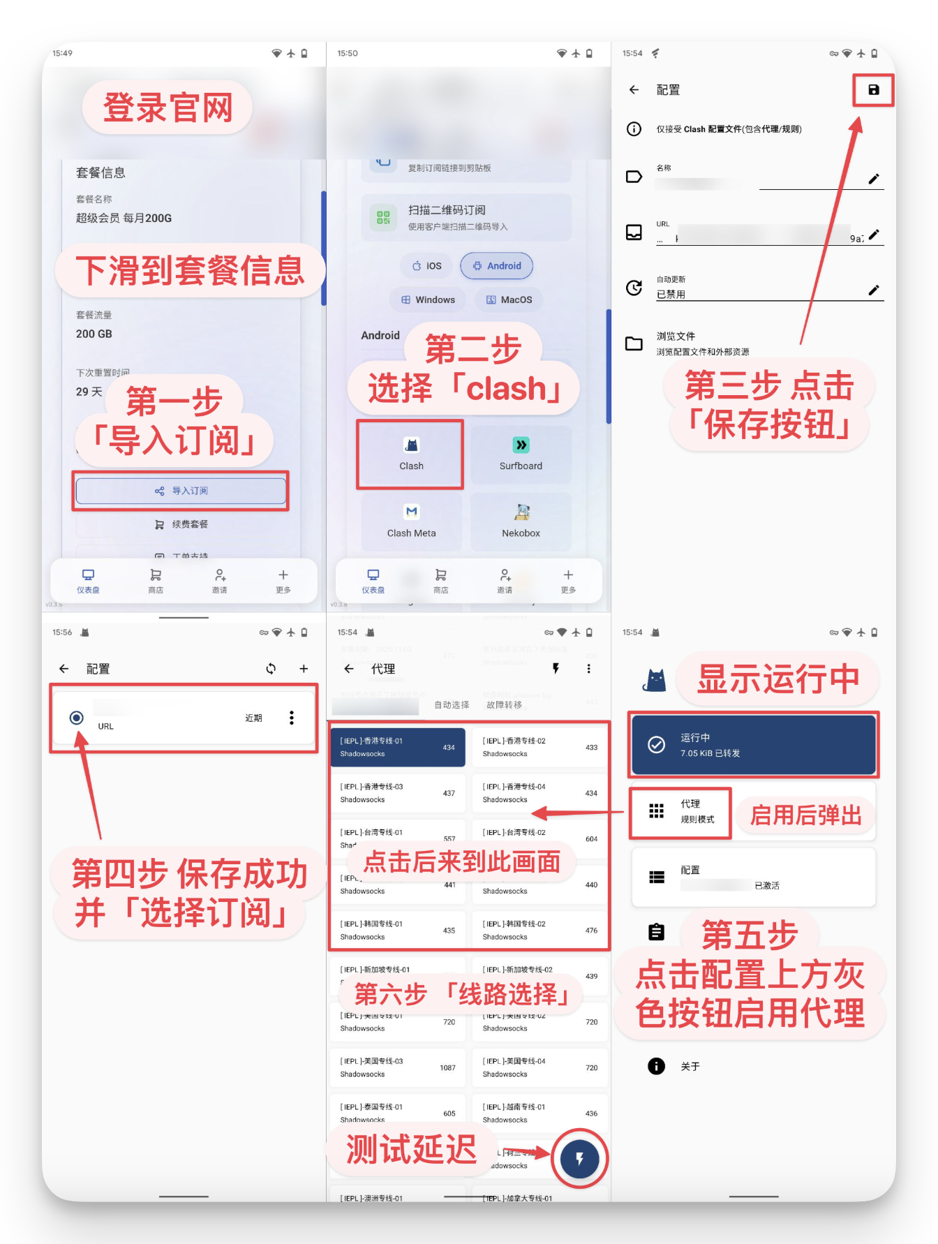 三、导入订阅,节点选择,连接使用(一共有两种方法,下面有详细图文,照着配置即可)
